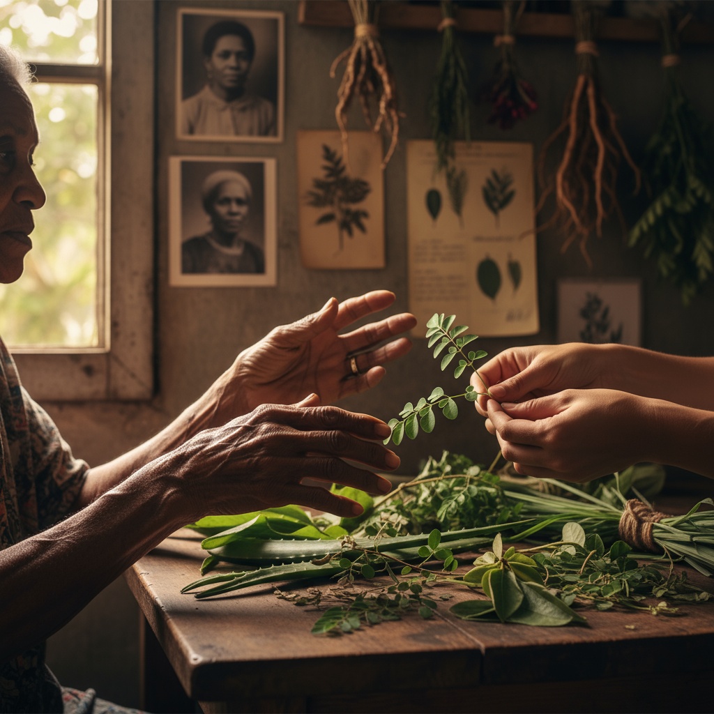 Elders teaching youth the medicinal plant wisdom passed down through generations—the same knowledge Victoria carried, now being reclaimed with pride instead of shame.